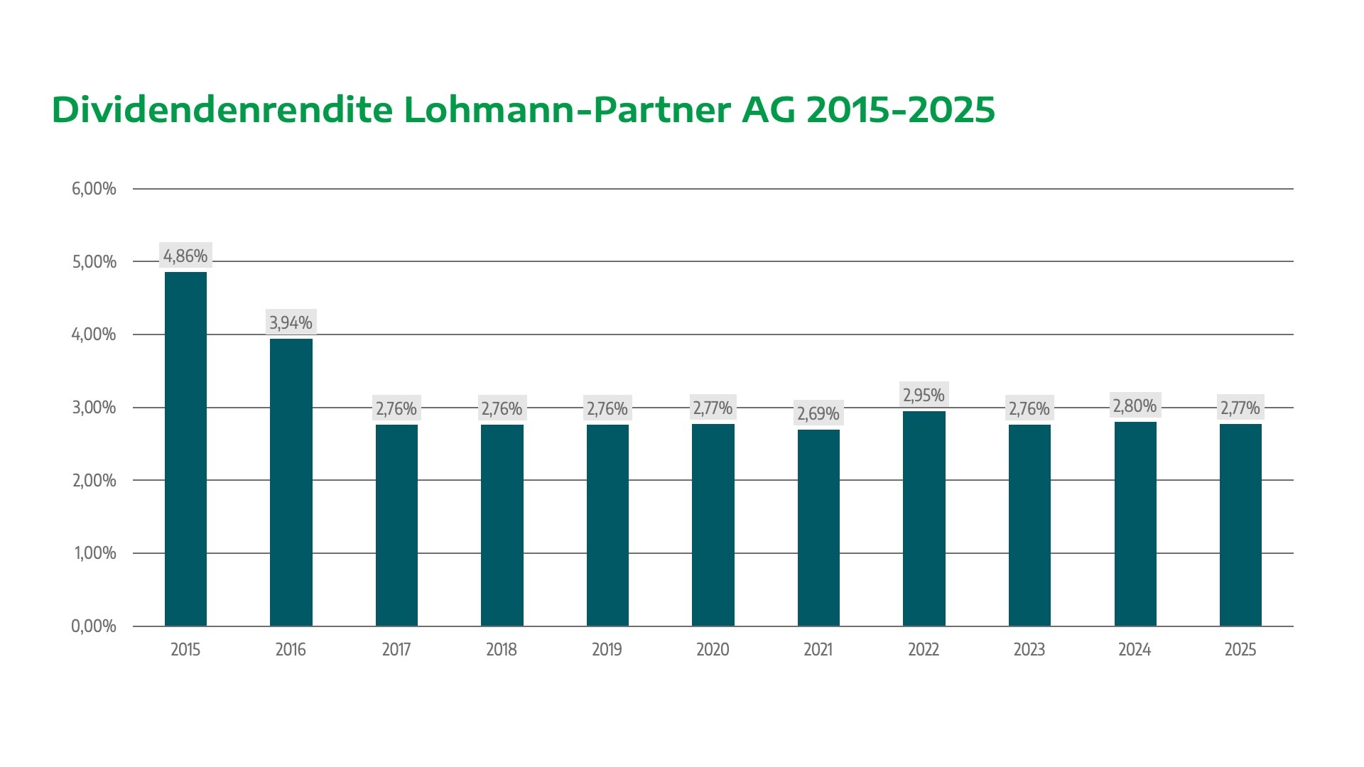 Die nachfolgende Grafik zeigt die jährliche Dividendenausschüttung der Lohmann-Partner AG.