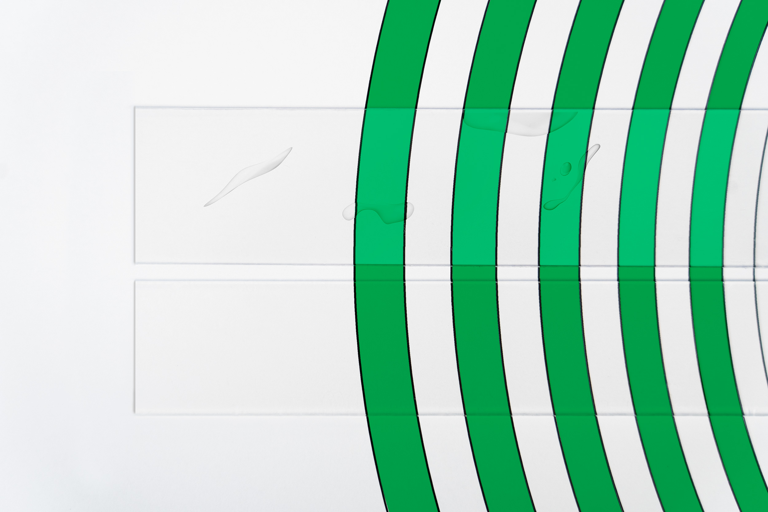 Herkömmliches OCA Tape (oben) vs. Lohmann OCA Tape (unten)