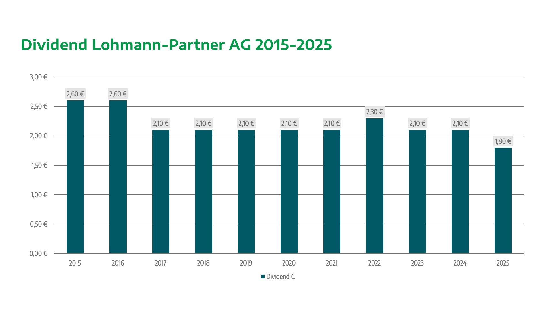 The average dividend over the last 11 years (2015–2025) was €2.18 per share.